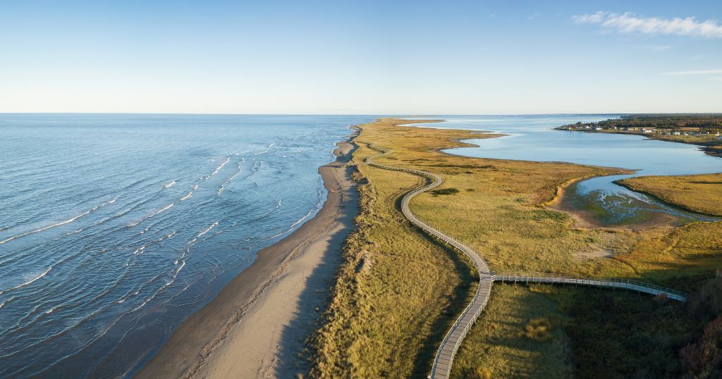 Cette immense étendue de sable s’étire sur 12 kilomètres le long d’une dune naturelle remarquable. Une passerelle en bois de deux kilomètres permet d’explorer la faune et la flore du site sans perturber l’écosystème fragile, en faisant le lieu tout désigné pour découvrir la riche biodiversité du Nouveau-Brunswick et des paysages à couper le souffle.