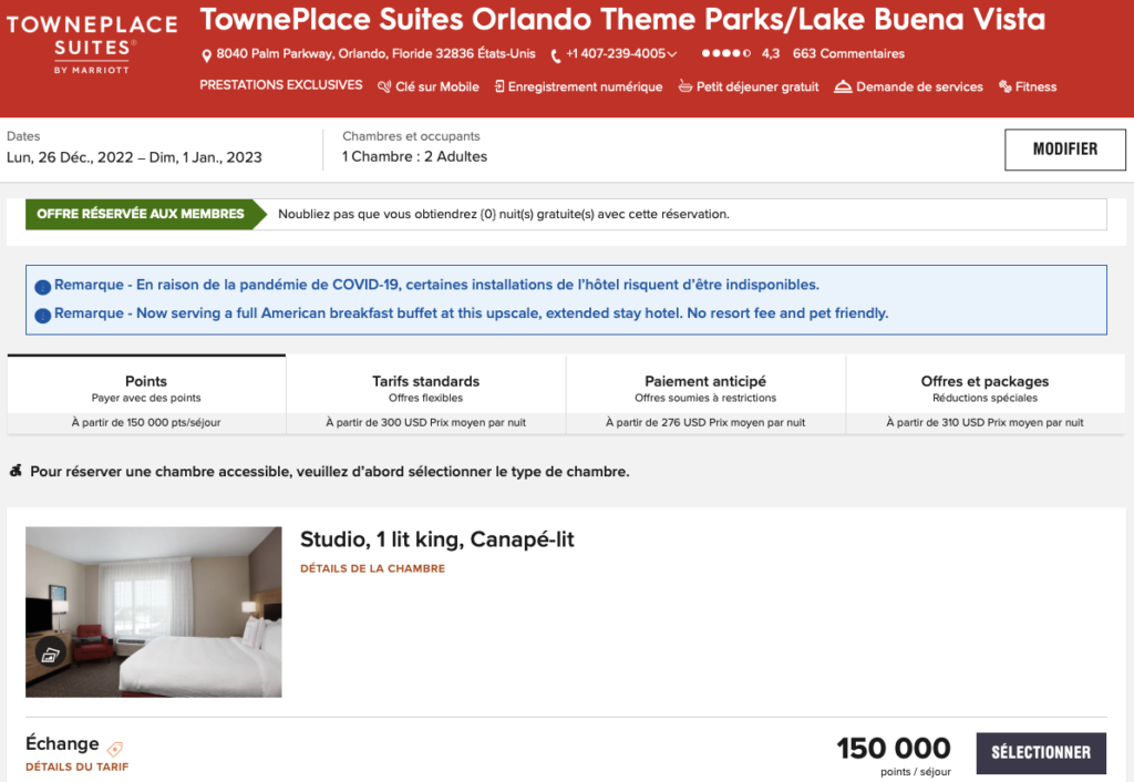 Après une réservation faite en points, vérifiez le nombre de points requis dans les semaines suivantes pour la même période. Il arrive très souvent que le nombre de points baisse… à votre avantage !