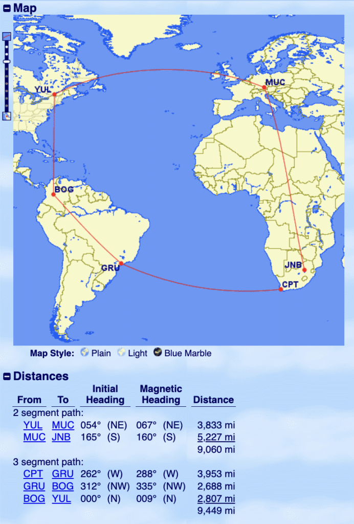 Le meilleur outil pour vous aider à faire l’ébauche de votre tour du monde est Flight Connections. Ensuite, pour optimiser ce type de réservation, il est préférable d’utiliser des outils comme Great Circle Mapper pour calculer précisément les distances entre les segments, et Roame pour repérer les disponibilités en primes sur les partenaires aériens. Le tout peut ensuite être réservé en ligne ou, dans certains cas, via le centre de contact Aéroplan.