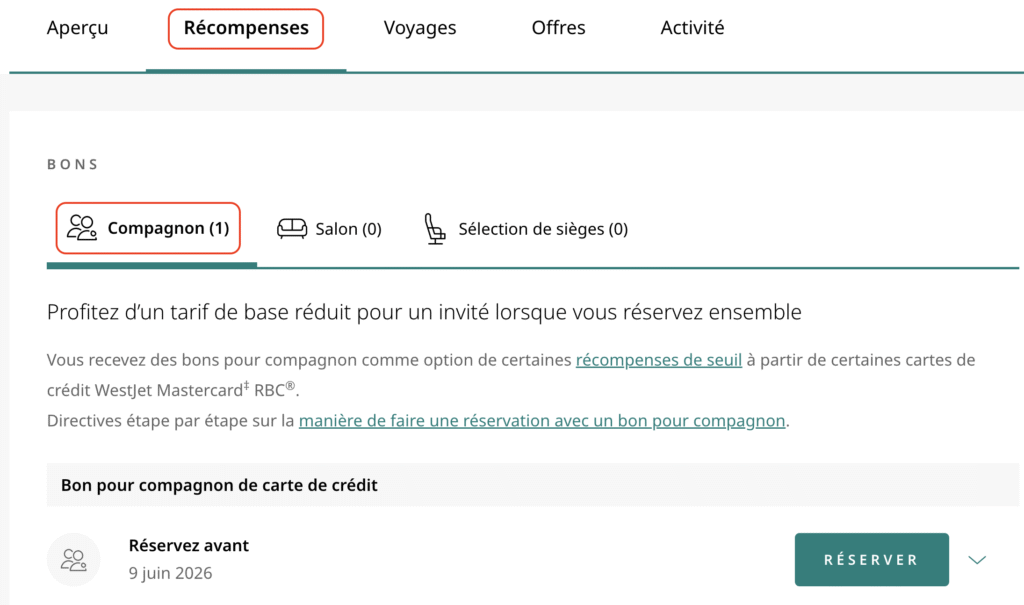 Il y a deux façons principales d’obtenir un bon pour compagnon de voyage WestJet :
