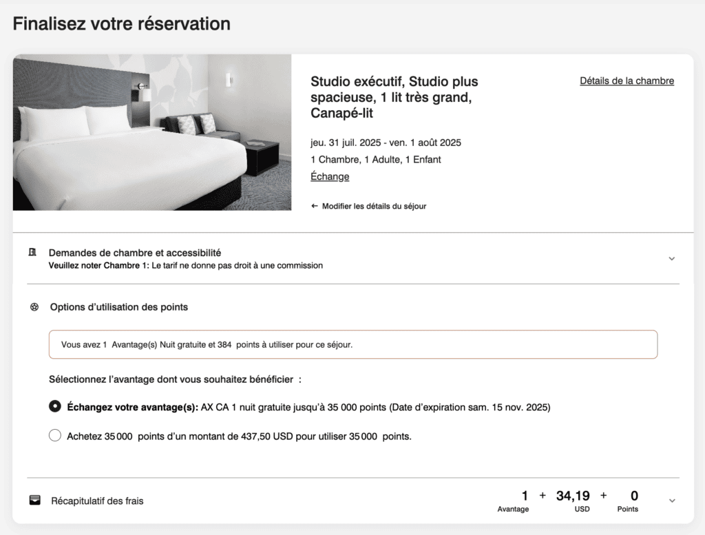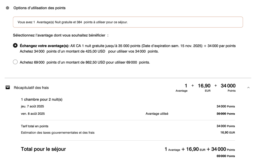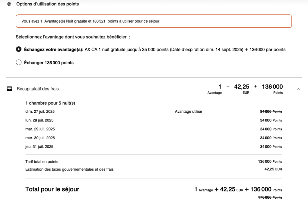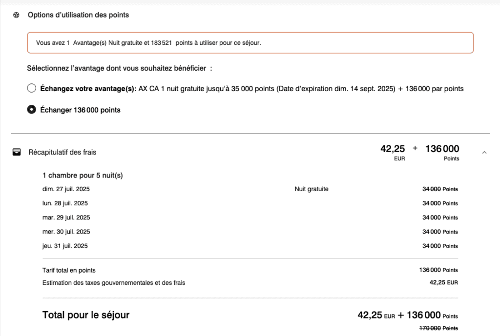 Vous paierez 136 000 points, mais vous aurez utilisé votre certificat d’une nuit gratuite.