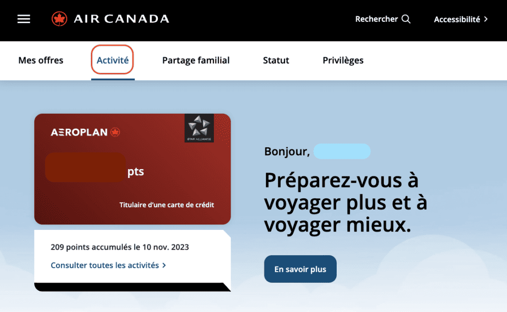 Vous les verrez dans votre profil Aéroplan du site d’Air Canada, dans l’onglet Activité.