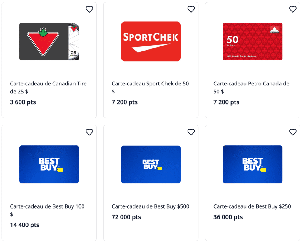 Étant donné que les points WestJet valent 1 cent chacun, les options d’échange de cartes-cadeaux et de marchandises ne sont généralement pas les plus avantageuses que vous puissiez obtenir. Cela dit, si vous ne pensez pas utiliser vos points pour un vol ou des vacances, ou si vous avez des vues sur une marchandise ou une carte-cadeau en particulier, vous devriez certainement aller de l’avant – le meilleur échange est celui qui vous convient !
