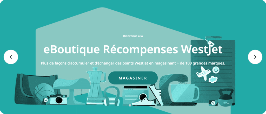 La eBoutique Récompenses WestJet est un portail de magasinage qui permet aux membres de Récompenses West Jet d’accumuler des points WestJet sur les achats effectués auprès d’un certain nombre de marques populaires comme Apple, Lululemon, Amazon, Sephora, et plus encore.
