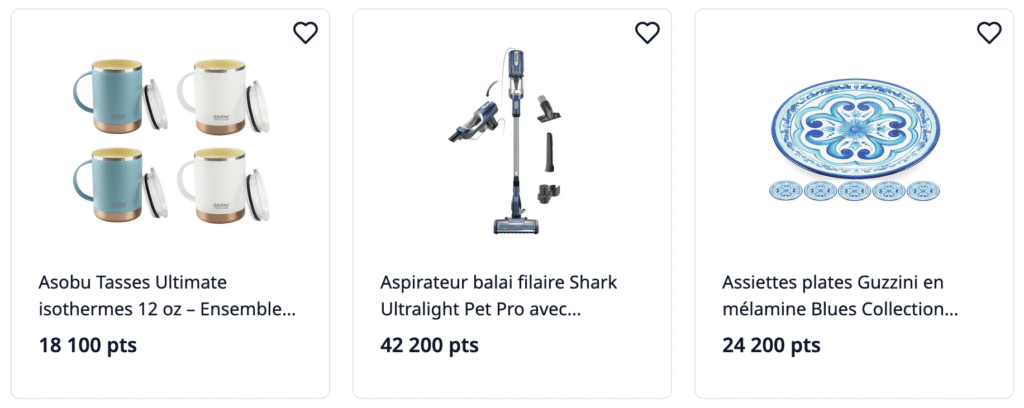 Grâce à la eBoutique Récompenses WestJet, vous pouvez échanger vos points contre des cartes-cadeaux, de la marchandise et plus encore. Vous avez le choix entre les produits des marchands partenaires de WestJet, ce qui vous permet d’échanger vos points WestJet contre des articles tels que des aspirateurs Dyson, des ustensiles de cuisine Le Creuset ou un tout nouveau iPad.