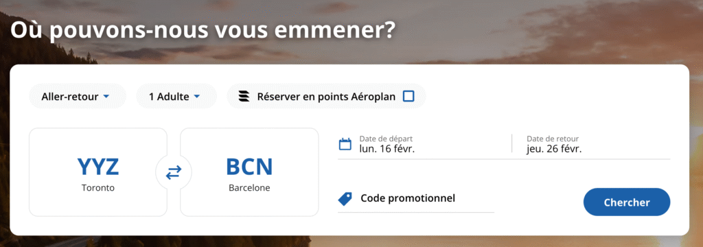 Achetez votre vol/ vos vacances Air Canada ou Aéroplan comme d’habitude.