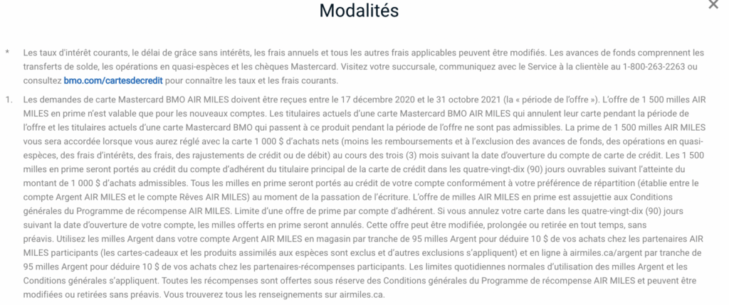 Comme par exemple, American Express ne verse le boni qu’une fois à vie, par carte. Donc, il faut bien lire les petits caractères de chaque offre. Voici un exemple pour sa Carte CobaltMD American Express :