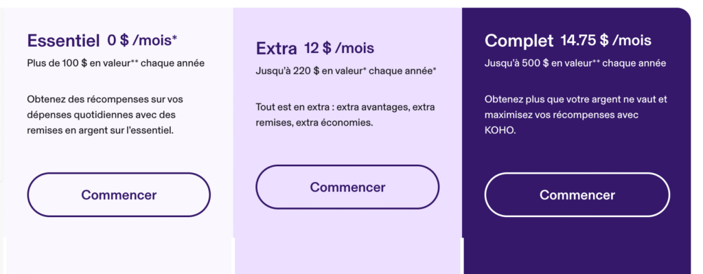 Le transfert d’argent international de Koho est l’une des nombreuses fonctionnalités offertes par les trois plans de service de Koho :