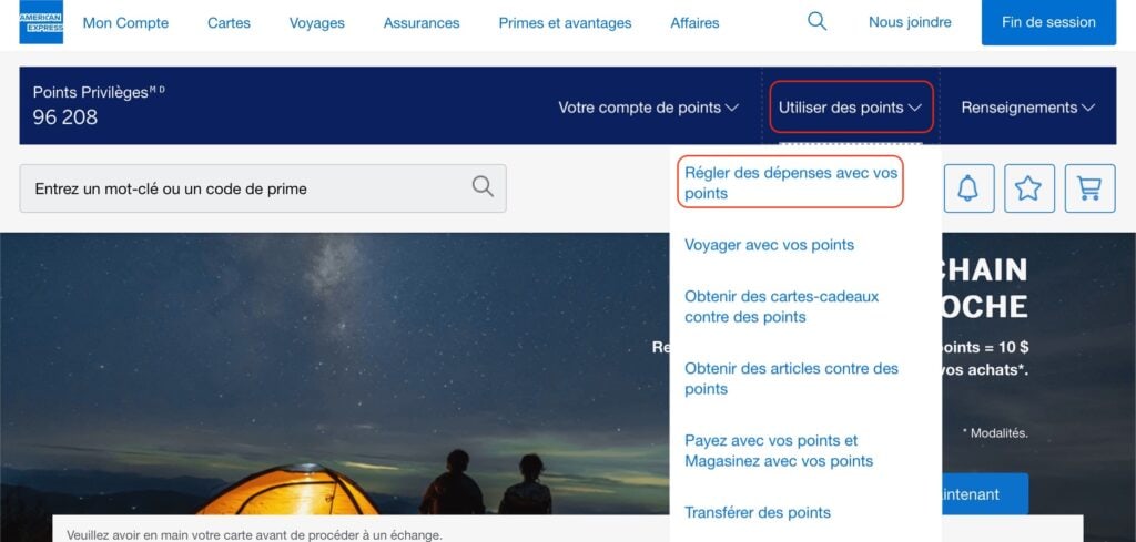 Voici toutes les cartes American Express Points-Privilèges qui permettent d’utiliser des points pour toutes les dépenses: