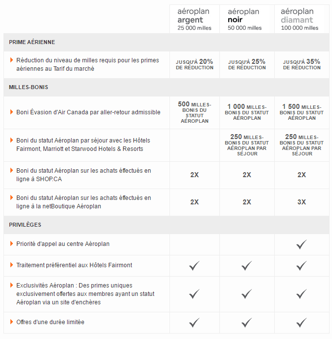 Voici les principaux points du programme Aéroplan concernant le Statut Aéroplan: