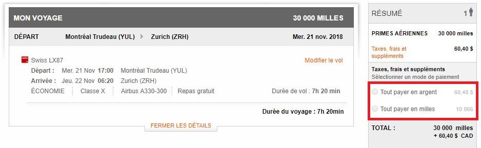 Cela consiste finalement à acheter des points Aéroplan à un coût de plus de 2 cents par point à travers ces taxes. À ne réserver qu’aux situations urgentes !
