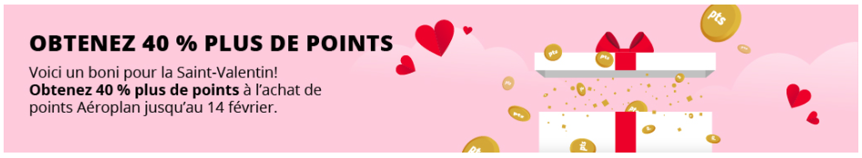 Jusqu’au 17 décembre 2025, vous pouvez obtenir jusqu’à 100 % de points bonis et cette offre spéciale se déroule sur la page d’achat Aéroplan.   À noter que le boni peut varier selon les membres Aéroplan.