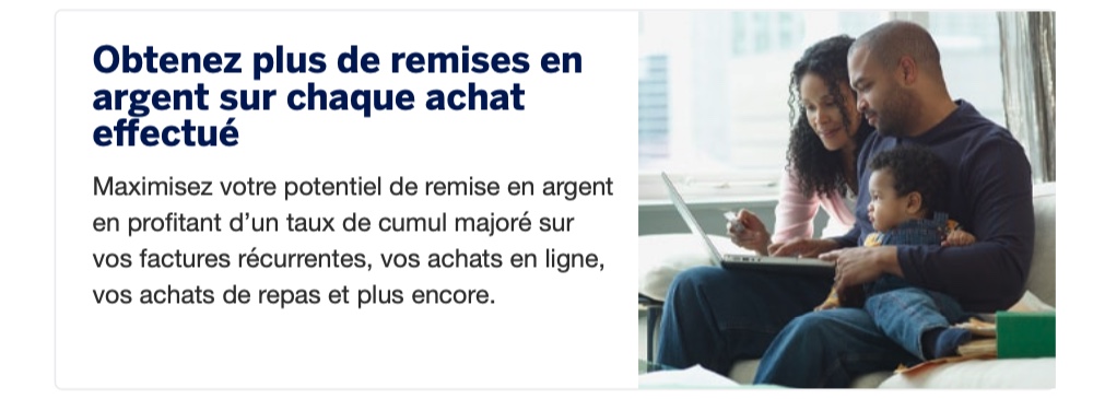 Et grâce à cette offre de bienvenue, vous pouvez obtenir une remise en argent de 5 % sur tous vos achats (jusqu’à concurrence de 2 000 $ d’achats) au cours des 3 premiers mois (soit jusqu’à 100 $ en crédits au compte).