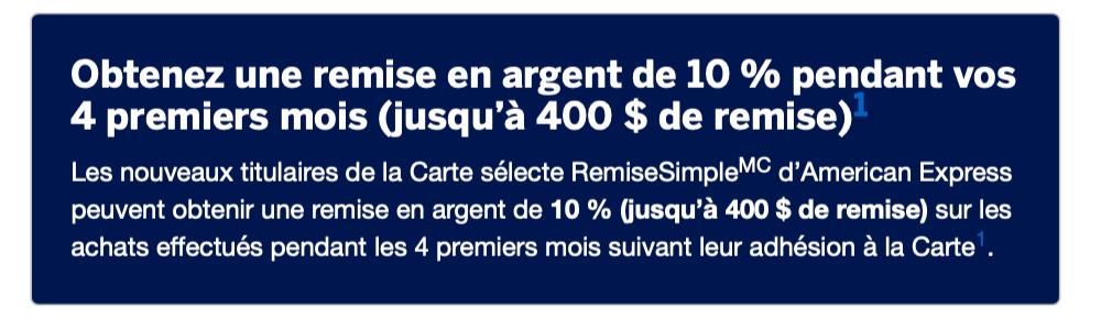 C’est le meilleur moment pour obtenir la Carte sélecte RemiseSimpleMD d’American Express avec cette prime de bienvenue. Vous voulez y souscrire ? Effectuez votre demande via le site d’American Express.
