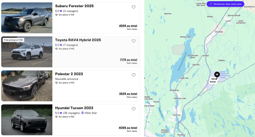 Par exemple, cette voiture Polestar 2 à Halifax avec Turo vous reviendrait à 332 $ (avant taxes), au lieu de 382 $.