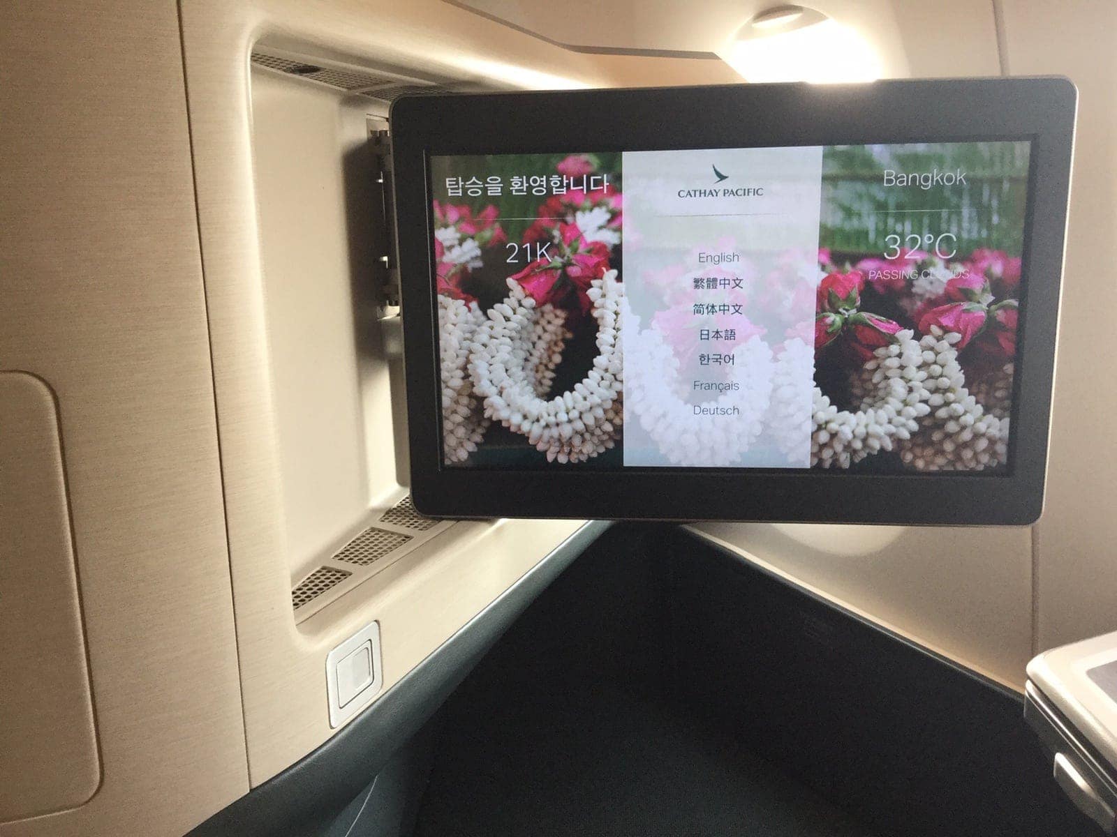 Nous avons profité d’une première expérience en classe affaires avec la compagnie Cathay Pacific sur un bien beau A350-1000 pour un vol Hong Kong – Bangkok. On a donc pu profiter d’un de leurs lounges (The Wing) à leur base d’Hong Kong + un passage prioritaire plus qu’apprécié pour l’immigration (bondée) de Bangkok. Pour 2 adultes et un bébé sur les genoux, cela nous a coûté 31 500 milles avios + 204,41$ de frais et taxes.